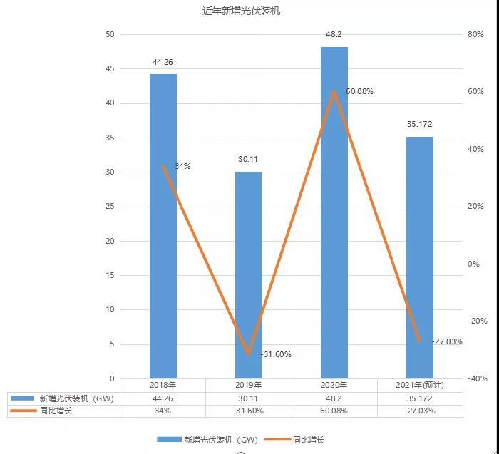2021年初,中國光伏行業(yè)協(xié)會預(yù)測,2021年我國光伏新增裝機規(guī)模將繼續(xù)保持增長,可能達到55吉瓦至65吉瓦。根據(jù)國家能源局發(fā)布的電力工業(yè)數(shù)據(jù),1-10月光伏新增29.31GW,僅比去年同期22.87GW多出6.44GW。10月裝機3.75GW,更是不及去年同期的4.17GW。如果按照目前的裝機速度,不要說今年無法達到光伏行業(yè)協(xié)會預(yù)計的55GW裝機目標,超過去年48GW的裝機規(guī)模都無法實現(xiàn)。
