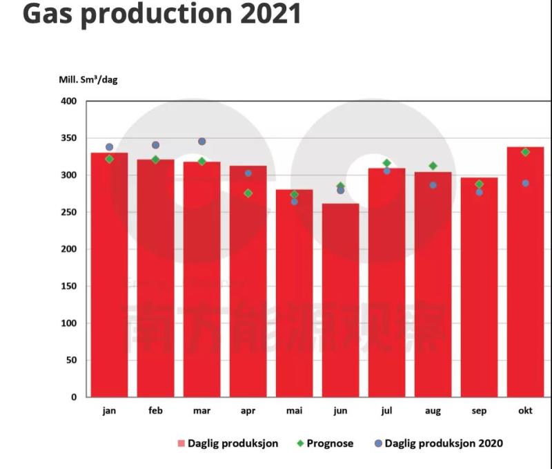 2021年夏季,挪威對(duì)油田和煉油廠進(jìn)行維修,天然氣產(chǎn)量一度下跌。隨著維修季的結(jié)束,挪威油氣生產(chǎn)從大規(guī)模生產(chǎn)限制中穩(wěn)步反彈,天然氣產(chǎn)量在10月上升至近3.5億立方米/天。但進(jìn)入11月,挪威主要的油氣田Troll油田再因故障限產(chǎn)。而俄羅斯和德國、烏克蘭之間復(fù)雜的地緣政治,也使得北溪2號(hào)管道投入使用問題不明朗,進(jìn)而引發(fā)俄羅斯對(duì)歐洲減供。德國天然氣管道運(yùn)營商Gascade的數(shù)據(jù)顯示,自12月18日以來,俄羅斯向德國輸送天然氣的“亞馬爾-歐洲管道”一路下跌,直至12月21日斷供。