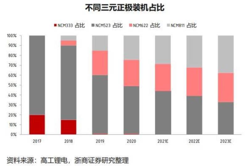 在三元材料體系內(nèi),目前達(dá)成的共識是,一方面通過高鎳實(shí)現(xiàn)更高的能量密度,另一方面通過減少鈷的用量來降低總體成本。
