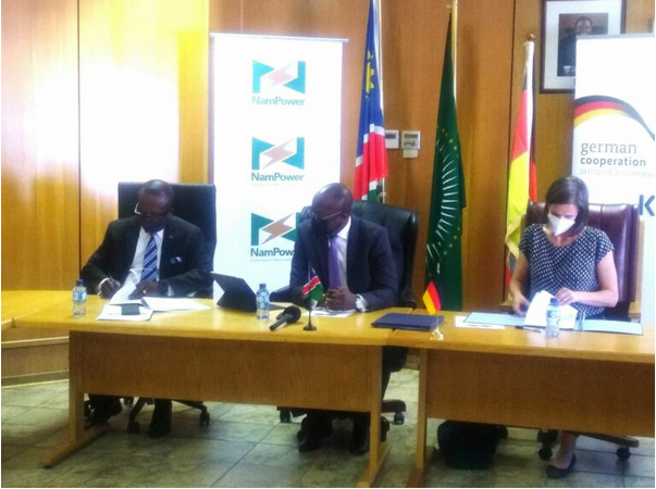 納米比亞電力公司總經(jīng)理Kahenge S Haulofu、納米比亞國(guó)家計(jì)劃委員會(huì)總干事Obeth Kandjoze和德國(guó)國(guó)家開(kāi)發(fā)銀行的Barbara Pirich在本月早些時(shí)候出席簽約儀式