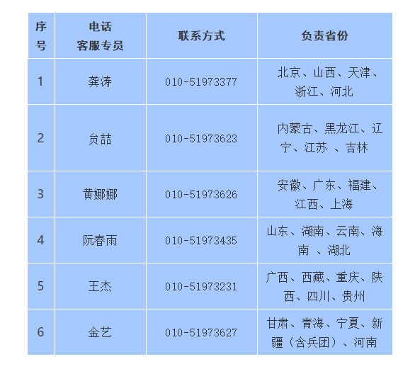 電話客服專員及聯(lián)系方式如下表。