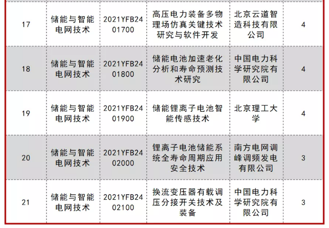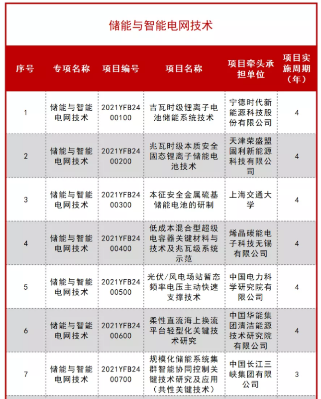 2021年度(十四五儲(chǔ)能)國家重點(diǎn)研發(fā)計(jì)劃重點(diǎn)專項(xiàng)立項(xiàng)公示進(jìn)展