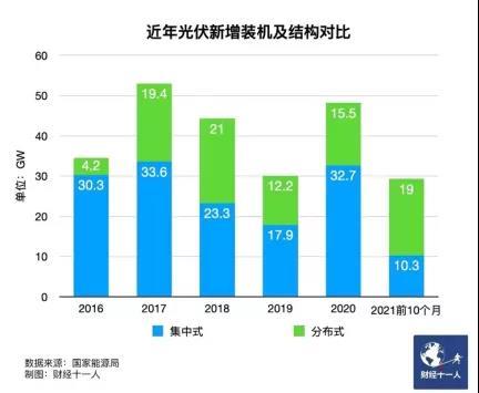 2021年1月-10月,分布式裝機(jī)19GW,占同期總裝機(jī)約65%,其中戶用同比增長106%至13.6GW,為新增裝機(jī)的主要來源。