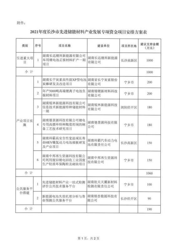湖南長遠(yuǎn)鋰科新能源有限公司、湖南省長寧炭素股份有限公司、 湖南镕鋰新材料科技有限公司、湖南銳林新能源科技有限公司、 湖南德景源科技有限公司、湖南科霸汽車動力電池有限責(zé)任公司、湖南省循環(huán)經(jīng)濟(jì)研究會等11家企業(yè)獲得支持資金。