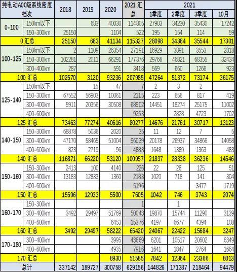 A00級產(chǎn)品2021年的增量主要是150-300公里區(qū)間的電池密度100-125間的電池產(chǎn)品。未來將在300公里的125瓦時以上的產(chǎn)品,這可以拿到0.9萬元左右補貼和2分的新能源積分,折算在1.2-1.5萬元的綜合新能源積分和補貼的優(yōu)勢,需要的是約15度電池,折算1度電的成本大約700-1000元,符合升級的經(jīng)濟算法。