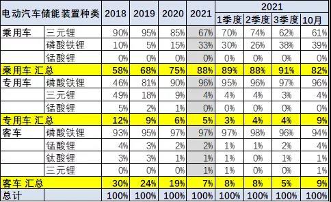 客車產(chǎn)品的磷酸鐵鋰2021年的3季度占比96%,仍是相對保守。