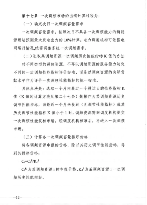 競價(jià)日 10: 30-11:30,電力調(diào)度機(jī)構(gòu)進(jìn)行一次調(diào)頻市場(chǎng)出清計(jì)算。依據(jù)一次調(diào)頻市場(chǎng)需求、一次調(diào)頻服務(wù)供應(yīng)商的申報(bào)數(shù)據(jù)、歷史一次調(diào)頻性能指標(biāo)等,以一次調(diào)頻服務(wù)供應(yīng)成本最小化為目標(biāo),進(jìn)行一次調(diào)頻市場(chǎng)集中出清,公布中標(biāo)結(jié)果。