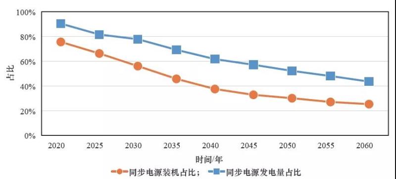 圖1 同步電源裝機及發(fā)電量占比的變化趨勢