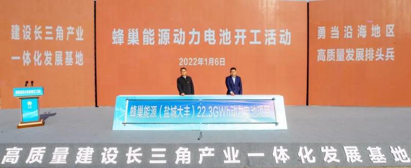 中國儲能網(wǎng)訊:1月6日,在項目投資簽約僅兩個月后,蜂巢能源在江蘇省鹽城舉行了蜂巢能源動力電池項目開工儀式,迅速推動工廠基地投入建設,充分彰顯蜂巢速度。項目建成后,鹽城動力電池生產(chǎn)基地將成為蜂巢能源在蘇北地區(qū)重要的PHEV及短刀電池核心產(chǎn)業(yè)基地。