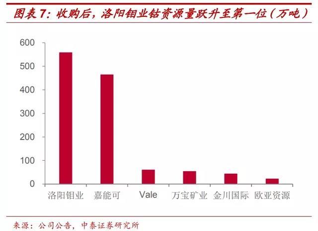 近幾年,洛陽鉬業(yè)通過收購剛果(金)的Tenke和Kisanfu銅鈷項目,鈷資源儲量不斷提升,尤其在2020年底,通過收購自由港的Kisanfu銅鈷項目,洛陽鉬業(yè)控制鈷資源量由248.73萬噸提高到558.73萬噸,實現(xiàn)鈷資源量翻倍,同時鈷資源量也成功超越嘉能可(鈷資源量為465.08萬噸)成為全球第一大鈷資源企業(yè)。洛陽鉬業(yè)、嘉能可擁有的鈷資源量占據(jù)全球鈷資源量的近40%。