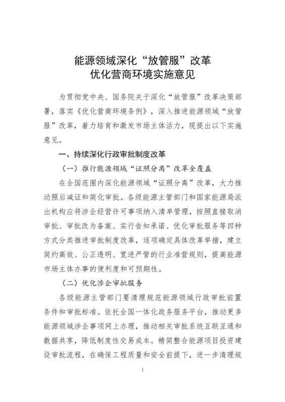國家能源局關于印發(fā)能源領域深化“放管服”改革優(yōu)化營商環(huán)境實施意見的通知