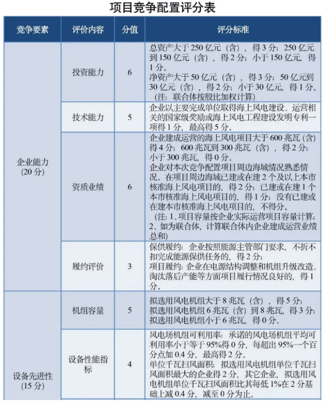 專家評審采用綜合評分法,主要包括企業(yè)能力(20分)、設(shè)備先進性(15分)、實施方案(25分)、電價水平(40分)等競爭要素。詳細評分指標和分數(shù)權(quán)重詳見附表。