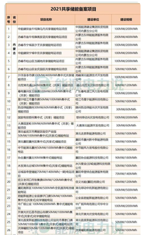 據(jù)公開(kāi)信息統(tǒng)計(jì),截止目前內(nèi)蒙古、湖北、山西、寧夏、甘肅、河北、山東、陜西、河南等省均有共享儲(chǔ)能備案項(xiàng)目,據(jù)不完全統(tǒng)計(jì),2021年備案的共享儲(chǔ)能項(xiàng)目達(dá)85個(gè),總建設(shè)規(guī)模超12GW/24GWh。