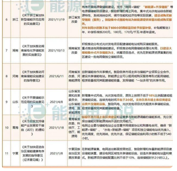 2021年1月以來(lái),青海、寧夏、湖南、浙江、內(nèi)蒙古等多省印發(fā)儲(chǔ)能指導(dǎo)意見(jiàn),均有提及共享儲(chǔ)能。