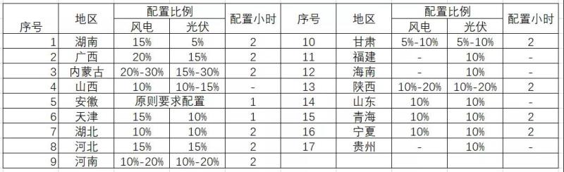 表1 各省新能源配置儲(chǔ)能政策要求