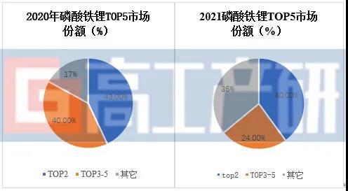 從磷酸鐵鋰正極材料企業(yè)競(jìng)爭(zhēng)格局看,2020年TOP5市場(chǎng)份額為83%,2021年TOP5市場(chǎng)份額為64%,市場(chǎng)集中度下降,原因是:1)2016年到2020年上半年,受補(bǔ)貼政策影響,磷酸鐵鋰正極材料需求幾乎停止增長(zhǎng),競(jìng)爭(zhēng)激烈,不少磷酸鐵鋰材料企業(yè)停產(chǎn)或破產(chǎn),市場(chǎng)集中度提升;2)2020年下半年開始,磷酸鐵鋰需求大幅度增加,很多停產(chǎn)的磷酸鐵鋰企業(yè)復(fù)產(chǎn),并引起新的競(jìng)爭(zhēng)者進(jìn)入磷酸鐵鋰行業(yè),磷酸鐵鋰正極材料企業(yè)變多,市場(chǎng)集中度降低。