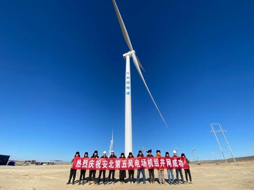 項目自2021年7月2日正式開工建設以來,新能源集團主動擔當、周密組織,項目領導坐鎮(zhèn)一線協(xié)調(diào)指揮,與各參建單位一起,積極克服了疫情、氣候、設備供貨和運輸?shù)炔焕蛩赜绊?,統(tǒng)籌抓好疫情防控和基建安全生產(chǎn)工作,實行全天候輪流作業(yè),緊盯設備交付,優(yōu)化現(xiàn)場施工組織,嚴抓質(zhì)量和進度,確保了工程安全質(zhì)量可控在控。全體員工充分發(fā)揚敢當重任、敢打硬仗的精神,搶抓冬季施工窗口期,如期保質(zhì)保量完成了既定的任務目標,展現(xiàn)了中國電建新能源速度。項目于2021年9月19日完成了首臺風機基礎澆筑,2021年10月20日完成了全部基礎澆筑,2021年11月21日完成了首臺風電機組吊裝工作,2021年12月31日具備了并網(wǎng)發(fā)電條件,2022年1月12日實現(xiàn)了首批機組并網(wǎng)發(fā)電。