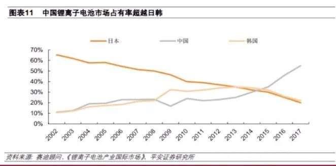 圖2:白名單后中國(guó)鋰電市場(chǎng)占有率開(kāi)始超越日韓