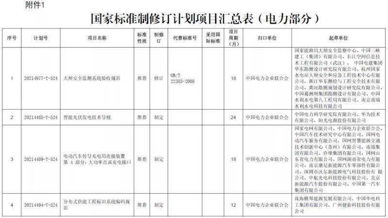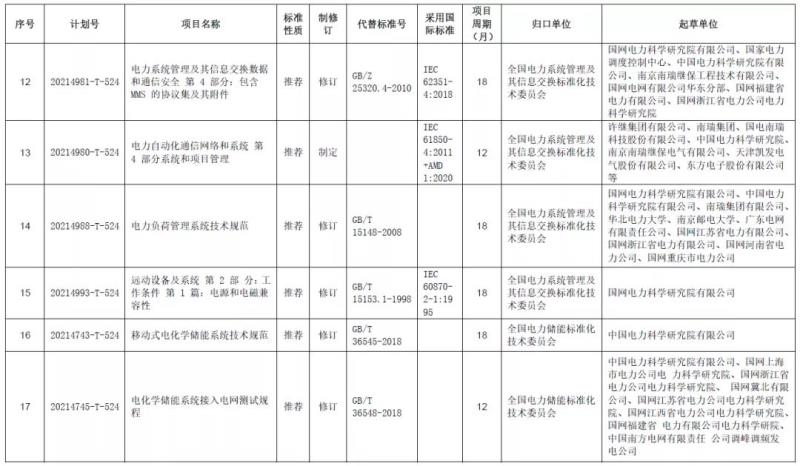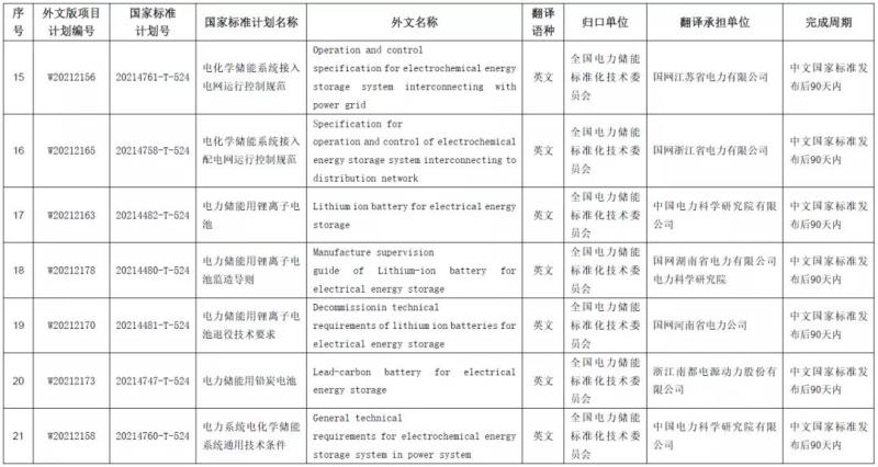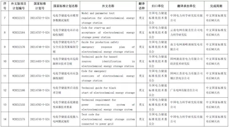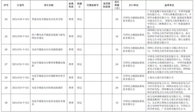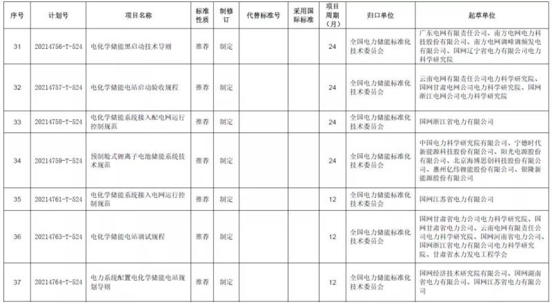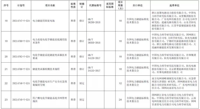 儲(chǔ)能等多項(xiàng)國(guó)家標(biāo)準(zhǔn)制修訂計(jì)劃項(xiàng)目匯總表