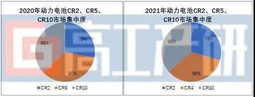 從市場競爭格局角度來看,2021年中國動力電池企業(yè)CR2占比77.3%,與2020年提升4.7%;CR5企業(yè)市場占比90.2%\CR10企業(yè)市場占比95.7%,與2020年占有率基本持平。