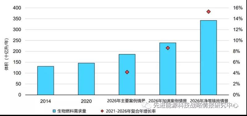 圖6 至2026年不同情景預(yù)測的生物燃料需求量增長情況