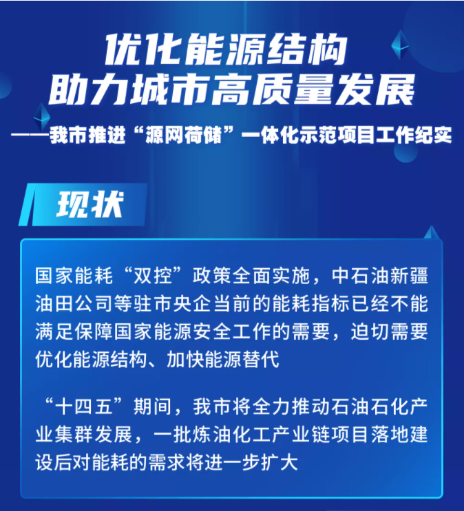 除烏爾禾“源網(wǎng)荷儲”一體化項目外,目前,我市按照國家發(fā)改委、國家能源局《關于推進電力“源網(wǎng)荷儲”一體化和多能互補項目示范有關工作的通知》要求,結(jié)合石油石化產(chǎn)業(yè)用電穩(wěn)定性好、新能源吸納能力強、增量配電網(wǎng)接入便捷等特點,同時組織申報了白堿灘工業(yè)園區(qū)“源網(wǎng)荷儲”一體化示范項目。我市積極協(xié)調(diào)國網(wǎng)新疆電力公司給予這兩個示范項目建設支持,并計劃以此為切入點,加快能源替代,推動石油石化企業(yè)穩(wěn)產(chǎn)、上產(chǎn),支持駐市中央石油石化企業(yè)履行保障國家能源安全的責任。