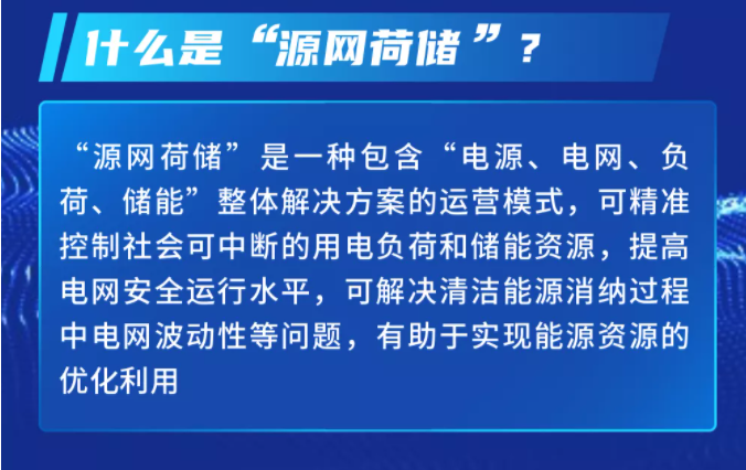 “源網(wǎng)荷儲”是一種包含“電源、電網(wǎng)、負荷、儲能”整體解決方案的運營模式,可精準控制社會可中斷的用電負荷和儲能資源,提高電網(wǎng)安全運行水平,可解決清潔能源消納過程中電網(wǎng)波動性等問題。從本質(zhì)上來講,它有助于實現(xiàn)能源資源的優(yōu)化利用。