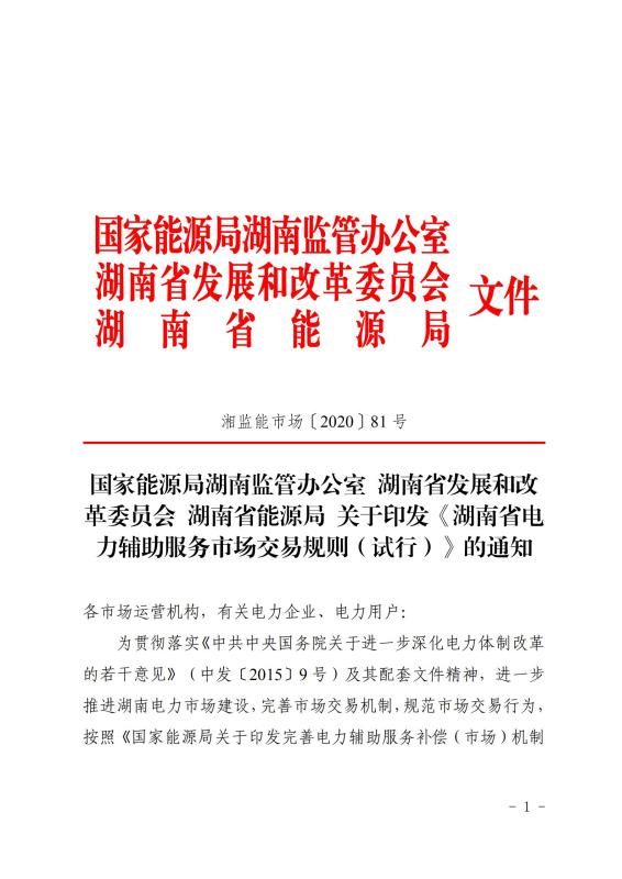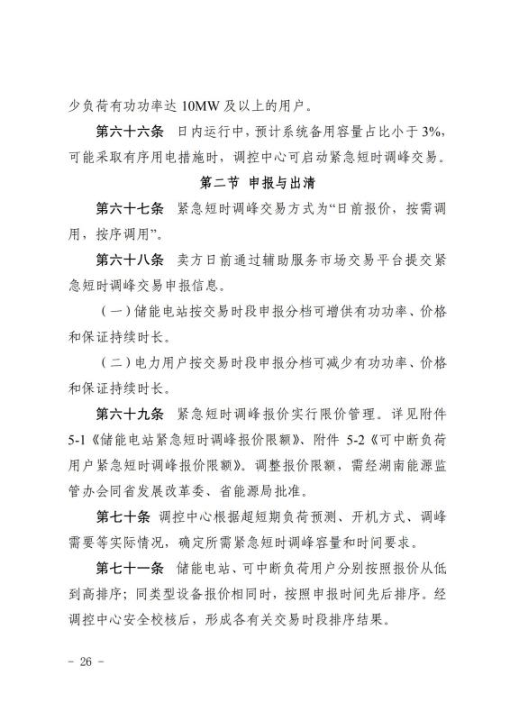 中國儲(chǔ)能網(wǎng)訊:湖南能監(jiān)辦日前發(fā)布了《湖南省電力輔助服務(wù)市場交易規(guī)則(試行)的通知》,2020年11月起,湖南省電力輔助服務(wù)市場開始試運(yùn)營。電力輔助服務(wù)市場交易包含深度調(diào)峰交易、啟停調(diào)峰交易、旋轉(zhuǎn)備用交易和緊急短時(shí)調(diào)峰交易等交易品種。