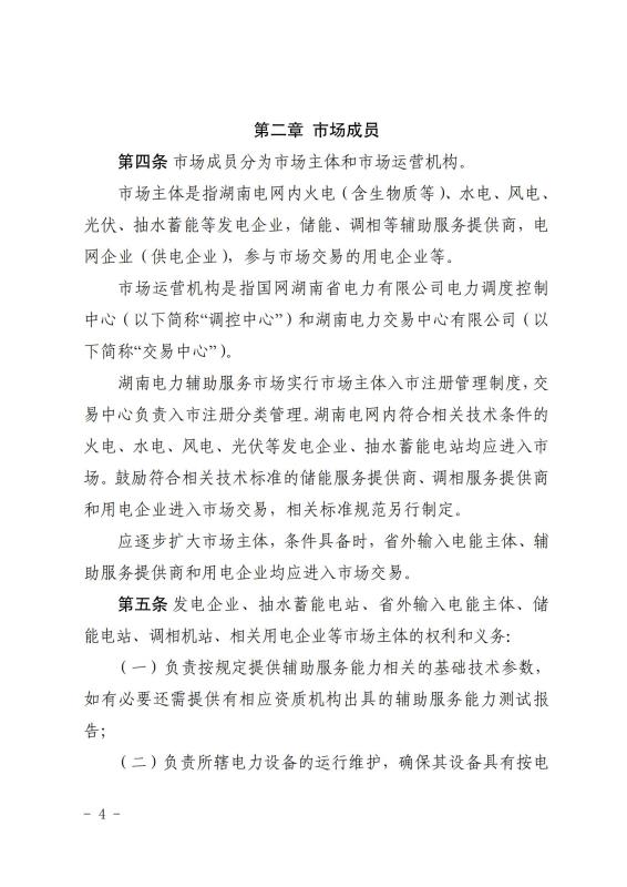 湖南電力輔助服務(wù)市場實(shí)行市場主體入市注冊(cè)管理制度,交易中心負(fù)責(zé)入市注冊(cè)分類管理。湖南電網(wǎng)內(nèi)符合相關(guān)技術(shù)條件的火電、水電、風(fēng)電、光伏等發(fā)電企業(yè)、抽水蓄能電站均應(yīng)進(jìn)入市場。 鼓勵(lì)符合相關(guān)技術(shù)標(biāo)準(zhǔn)的儲(chǔ)能服務(wù)提供商、調(diào)相服務(wù)提供商和用電企業(yè)進(jìn)入市場交易,相關(guān)標(biāo)準(zhǔn)規(guī)范另行制定。