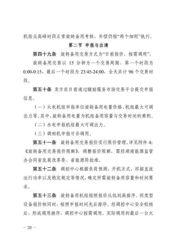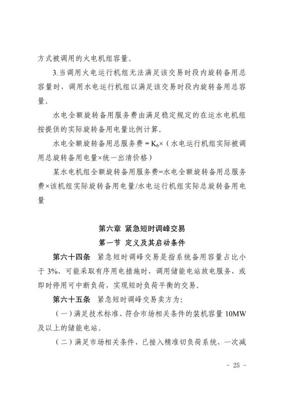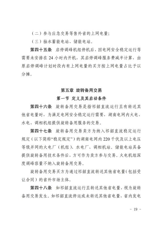 旋轉(zhuǎn)備用交易賣方為納入祁韶直流穩(wěn)定運(yùn)行規(guī)定(以下簡稱“穩(wěn)定規(guī)定”)的湖南電網(wǎng)內(nèi) 220 千伏及以上電壓等級(jí)并網(wǎng)的火電廠(機(jī)組)、水電廠、調(diào)相機(jī)站。儲(chǔ)能電站具備提供旋轉(zhuǎn)備用技術(shù)條件后,方可作為賣方參與交易?;痣姍C(jī)組深度調(diào)峰容量不納入旋轉(zhuǎn)備用交易。