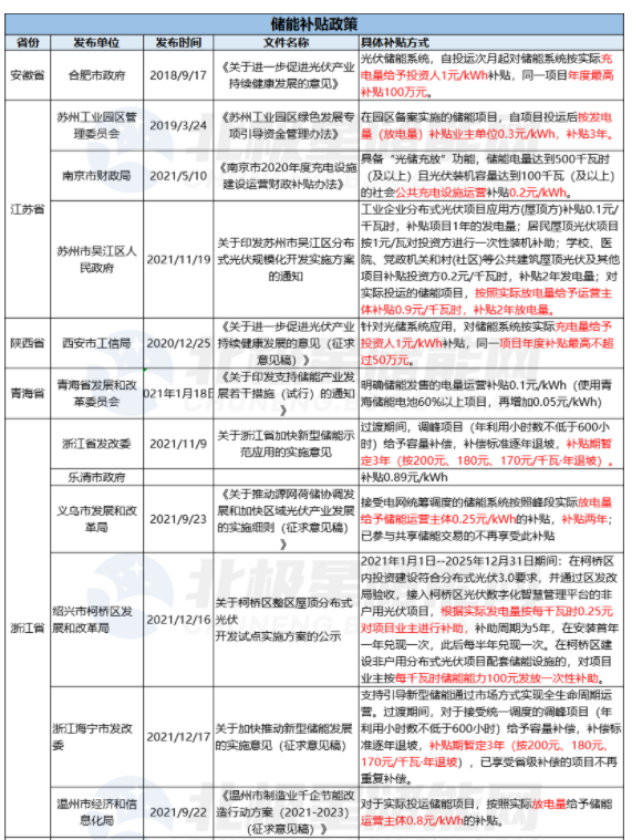 2021年截止到目前共有20省市明確提出來儲能補(bǔ)貼。