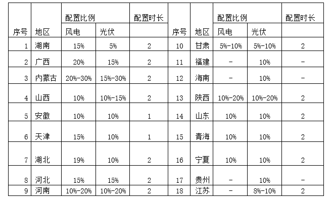表1 各省份新能源配置儲(chǔ)能政策要求