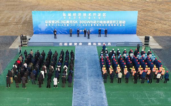 SK動(dòng)力電池鹽城基地是韓國SK集團(tuán)全球布局中最大的、具有示范引領(lǐng)帶動(dòng)作用的行業(yè)龍頭。此次開工的SK30GWh動(dòng)力電池項(xiàng)目,是近年來鹽城市最大的利用外資項(xiàng)目,計(jì)劃今年12月份主體竣工,明年1月份設(shè)備進(jìn)場(chǎng),投產(chǎn)后年可新增銷售200億元,為鹽城新能源汽車產(chǎn)業(yè)發(fā)展壯大提供好配套和強(qiáng)支撐。