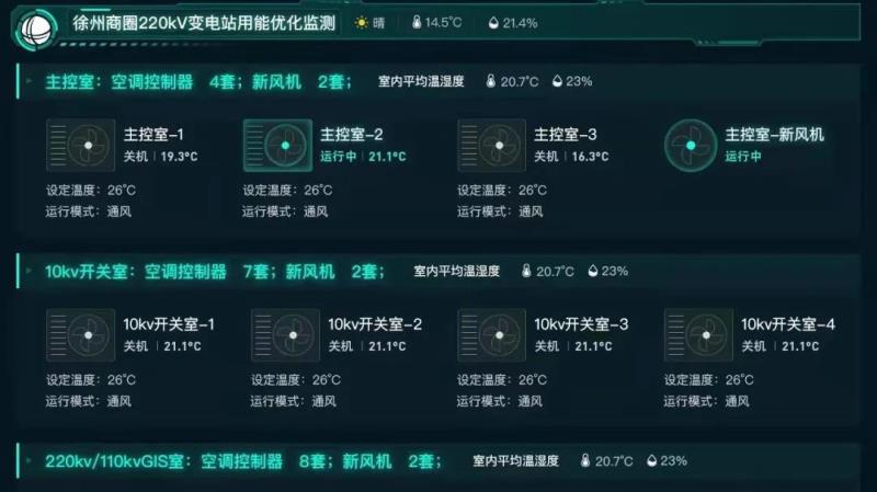 “我們根據(jù)變電站內(nèi)外的溫度和熱負(fù)荷變化情況,通過空調(diào)智慧用電管理系統(tǒng)和智能免維護(hù)新風(fēng)系統(tǒng),實時調(diào)整變電站空調(diào)運(yùn)行策略模式和控制參數(shù),在滿足變電站室內(nèi)溫濕度指標(biāo)要求的前提下,達(dá)到降低變電站能耗水平的目標(biāo)?!眹W(wǎng)江蘇綜合能源服務(wù)有限公司儲能及產(chǎn)品事業(yè)部總經(jīng)理周顯威介紹到。