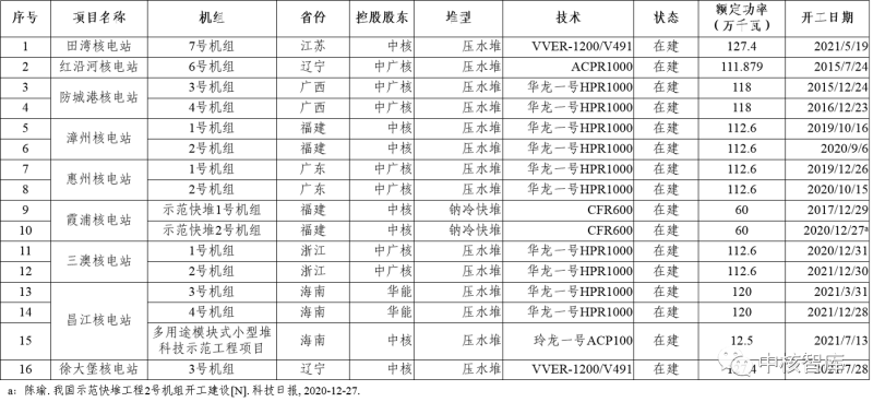 表1 我國大陸在運(yùn)核電機(jī)組情況