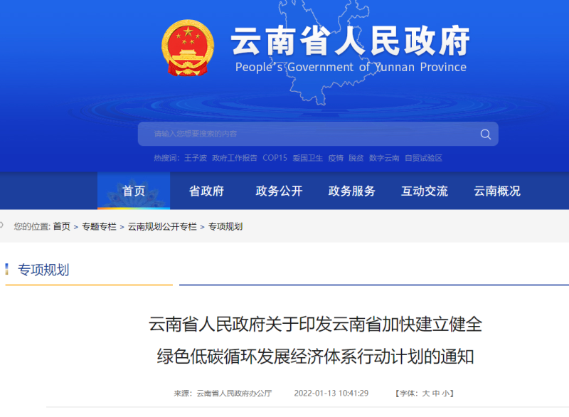 云南省人民政府關(guān)于印發(fā)云南省加快建立健全綠色低碳循環(huán)發(fā)展經(jīng)濟體系行動計劃的通知