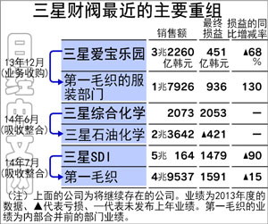 三星加速重組的原因是集團(tuán)業(yè)績快速惡化。據(jù)韓國公正交易委員會統(tǒng)計,13年度三星財閥整體的純利潤為24萬億韓元,比上一年度減少了18%。