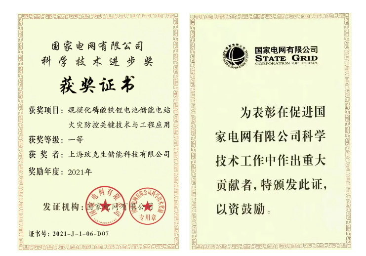 中國儲能網(wǎng)訊:1月20日,上海玫克生儲能科技有限公司收到國家電網(wǎng)有限公司2021年科學(xué)技術(shù)進步獎評審結(jié)果,公司重點研發(fā)成果“規(guī)模化磷酸鐵鋰電池儲能電站火災(zāi)防控關(guān)鍵技術(shù)與工程應(yīng)用”榮獲科學(xué)技術(shù)進步獎一等獎,彰顯了玫克生能源科技創(chuàng)新的硬實力。