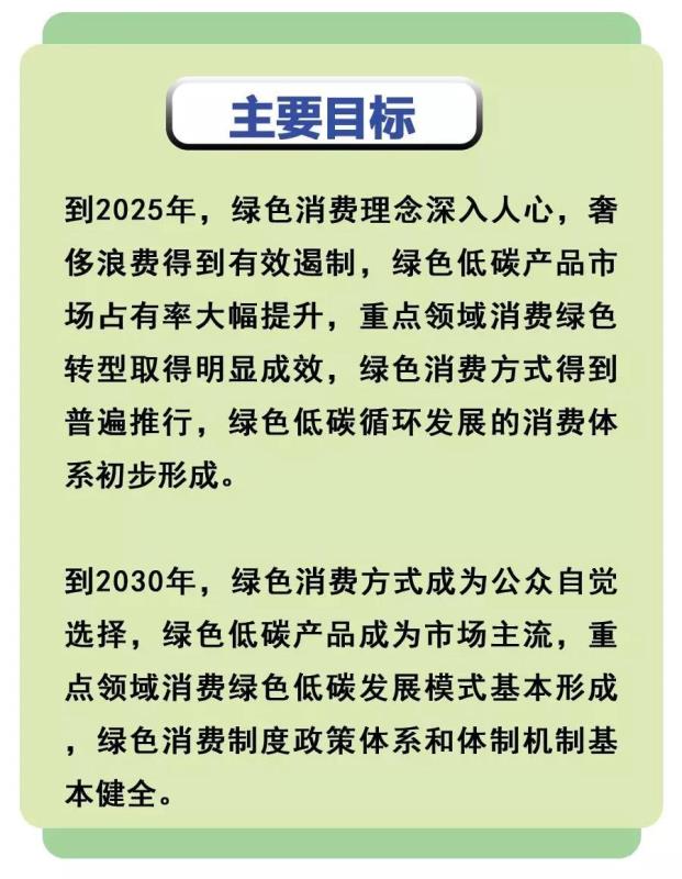 《實(shí)施方案》強(qiáng)調(diào),要大力發(fā)展綠色消費(fèi),增強(qiáng)全民節(jié)約意識(shí),反對(duì)奢侈浪費(fèi)和過度消費(fèi),擴(kuò)大綠色低碳產(chǎn)品供給和消費(fèi),完善有利于促進(jìn)綠色消費(fèi)的制度政策體系和體制機(jī)制,推進(jìn)消費(fèi)結(jié)構(gòu)綠色轉(zhuǎn)型升級(jí),加快形成簡(jiǎn)約適度、綠色低碳、文明健康的生活方式和消費(fèi)模式,為推動(dòng)高質(zhì)量發(fā)展和創(chuàng)造高品質(zhì)生活提供重要支撐。要堅(jiān)持系統(tǒng)推進(jìn)、重點(diǎn)突破、社會(huì)共治、激勵(lì)約束并舉等工作原則。明確到2025年和2030年促進(jìn)綠色消費(fèi)的主要目標(biāo)。
