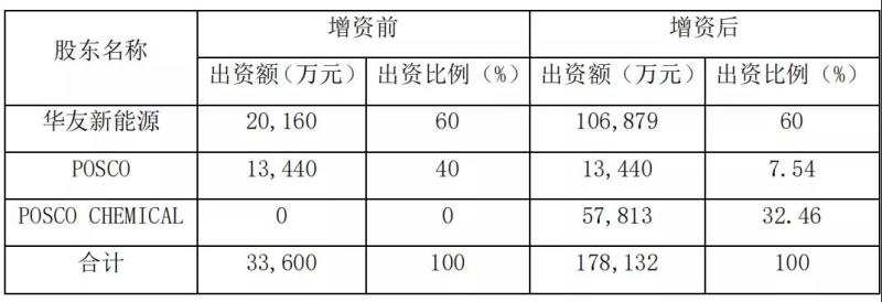華友浦項股權(quán)占比情況