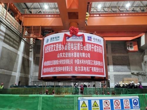 中國儲能網(wǎng)訊:1月20日,歷時70天的現(xiàn)場疊片組裝和試驗,山東最大抽水蓄能電站—文登抽水蓄能電站首臺機組轉(zhuǎn)子成功吊裝,轉(zhuǎn)子的成功吊裝標志著首臺機組正式進入總裝階段,為按期投產(chǎn)發(fā)電奠定了堅實的基礎。