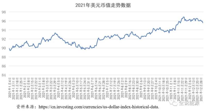 從統(tǒng)計(jì)數(shù)據(jù)看,2021年美元幣值的變化,與這一年里不斷上漲的天然氣、煤炭乃至原油價(jià)格基本保持一致。因此,2021年美元幣值變化的統(tǒng)計(jì)數(shù)字,無(wú)法給某些美元與能源價(jià)值上漲之間關(guān)系的說(shuō)法以合乎邏輯的支撐。