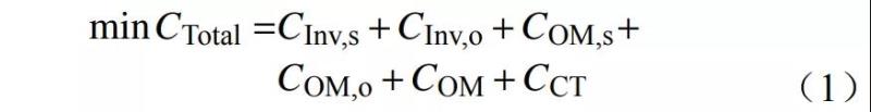 通過優(yōu)化設(shè)計規(guī)劃目標(biāo)及相應(yīng)限制約束,可以在規(guī)劃問題中納入上述因素影響。當(dāng)前規(guī)劃問題多以規(guī)劃期內(nèi)儲能及其他各類型系統(tǒng)設(shè)備的投資和運行總成本最小為目標(biāo),即通過合理規(guī)劃儲能,使儲能投建成本與儲能運行效益達(dá)到均衡。這使得儲能規(guī)劃方案得以充分發(fā)揮儲能在提升系統(tǒng)經(jīng)濟(jì)性、環(huán)保性、靈活性乃至可靠性等方面的效用[26],具體可表示為