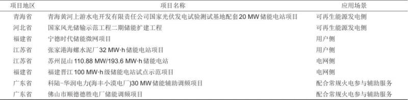 表4 2020年我國(guó)首批科技創(chuàng)新(儲(chǔ)能)試點(diǎn)示范項(xiàng)目