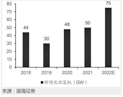 國海證券分析認(rèn)為,風(fēng)電、光伏屬于能源新基建中的一環(huán),目前裝機潛力巨大。同時風(fēng)電、光伏產(chǎn)業(yè)鏈規(guī)模龐大,相關(guān)領(lǐng)域投資也成為暢通國內(nèi)經(jīng)濟循環(huán)的重要手段。集邦咨詢認(rèn)為,在全球能源轉(zhuǎn)型的大背景下,可再生能源發(fā)展尤為重要,預(yù)計2022年光伏行業(yè)新增裝機規(guī)模將在75GW左右。