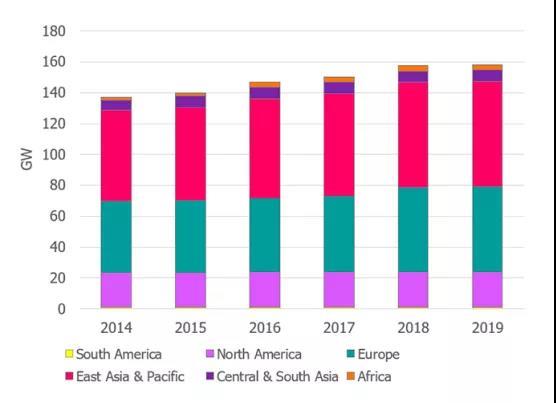 總體來看,目前國外在運的抽水蓄能電站中,歐美80%以上是在上世紀60到90年代之間投產的,主要功能是配合核電運行。本世紀以來,歐洲抽水蓄能的發(fā)展略有增長,主要為應對上世紀90年代和本世紀初能源需求的增加,以及風電、光伏等波動性電源的高速發(fā)展。