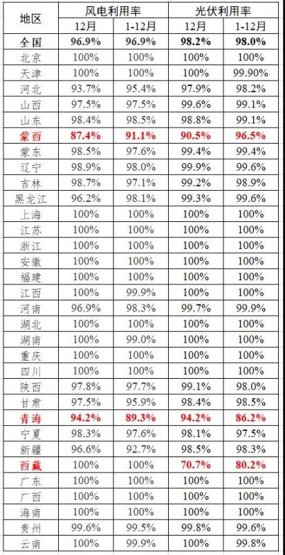 12月,風(fēng)電、光伏的利用率僅有87.4%和90.5%,全年利用率為91.1%、96.5%。