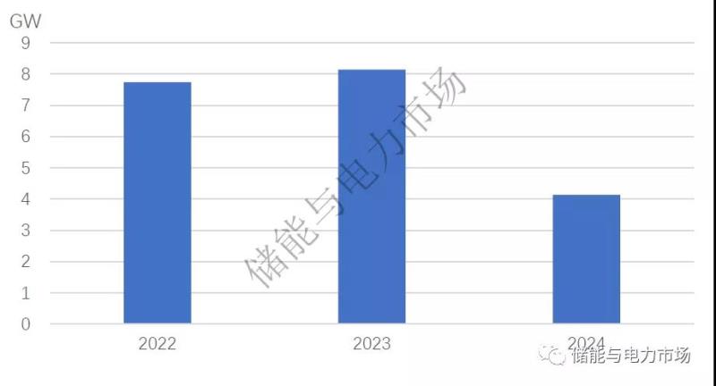 圖:新能源配套儲(chǔ)能的年度新增并網(wǎng)容量