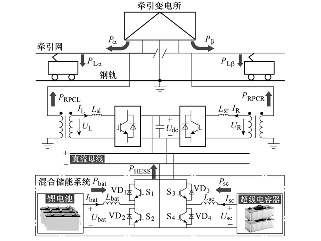 為避免不同儲(chǔ)能介質(zhì)間的能量交換,西南交通大學(xué)電氣工程學(xué)院的研究人員提出一種基于階梯能量管理的控制策略,通過(guò)抑制這種能量交換來(lái)提高系統(tǒng)的再生制動(dòng)能量利用率,并且該策略能夠充分發(fā)揮鋰電池能量密度高、超級(jí)電容器響應(yīng)速度快的優(yōu)勢(shì)。為補(bǔ)償鋰電池參考功率變化引起的功率跟蹤誤差,加入超級(jí)電容器補(bǔ)償環(huán)節(jié)來(lái)提升混合儲(chǔ)能系統(tǒng)的動(dòng)態(tài)性能。所提出的控制策略在RT-Lab OP5700實(shí)時(shí)仿真機(jī)中進(jìn)行了仿真驗(yàn)證,并結(jié)合某牽引變電所的實(shí)測(cè)數(shù)據(jù)進(jìn)行了算例分析,結(jié)果驗(yàn)證了本方法的有效性和可行性。
