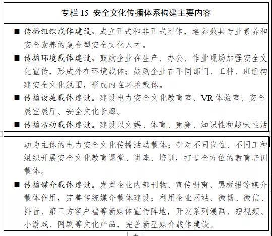 持續(xù)加強(qiáng)“和諧·守規(guī)”安全文化建設(shè)。貫徹落實(shí)《電力安全文化建設(shè)指導(dǎo)意見(jiàn)》,推進(jìn)文化制度、組織機(jī)構(gòu)、傳播體系、產(chǎn)業(yè)發(fā)展機(jī)制、品牌創(chuàng)建、教育培訓(xùn)等六項(xiàng)重點(diǎn)工程建設(shè),利用工業(yè)互聯(lián)網(wǎng)、大數(shù)據(jù)、人工智能技術(shù),形成電力安全文化新形態(tài)。完善電力企業(yè)安全文化建設(shè)基本規(guī)范,打造各具特色的企業(yè)安全文化。強(qiáng)化電力企業(yè)管理層的安全文化引領(lǐng)作用,提高主要負(fù)責(zé)人參與安全文化活動(dòng)的頻度。大力開(kāi)展電力安全科普基地建設(shè)和科普宣傳工作,利用“安全生產(chǎn)月”“國(guó)家防災(zāi)減災(zāi)日”等活動(dòng),固化一批安全科普精品活動(dòng)項(xiàng)目,提高全員安全文化建設(shè)參與度。